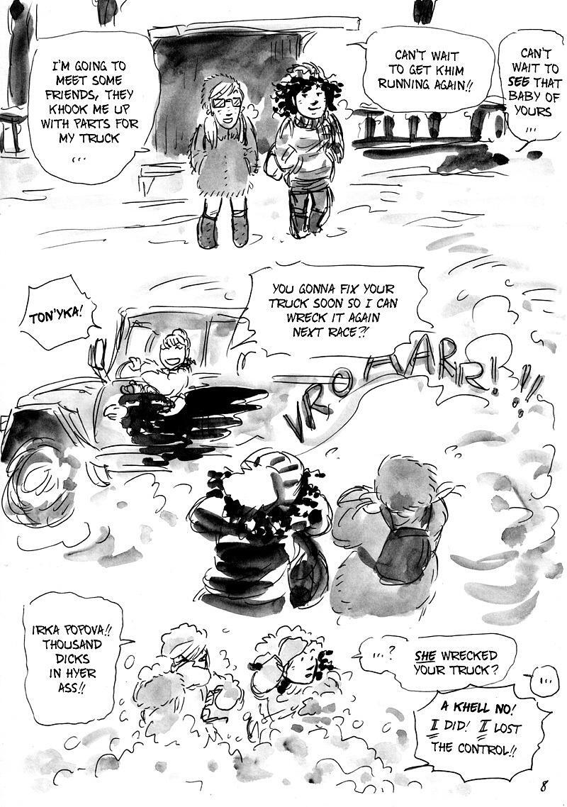 Alex is crazy about cars and racing. But this winter her stunt driver mom has dragged her along to the snowy depths of the Russian province, and tells Alex she's too young to drive in Russia, so she is to stay away from cars. Alex soon discovers that the big thing in Urgunovo is truck racing, and for her new classmates, not having a valid licence is not an issue. However, the races, as well as Karim, the total babe sharing a desk with Alex in school, are ruthlessly dominated by Irka, the mayor's daughter ... Does Alex have what it takes to beat her?!